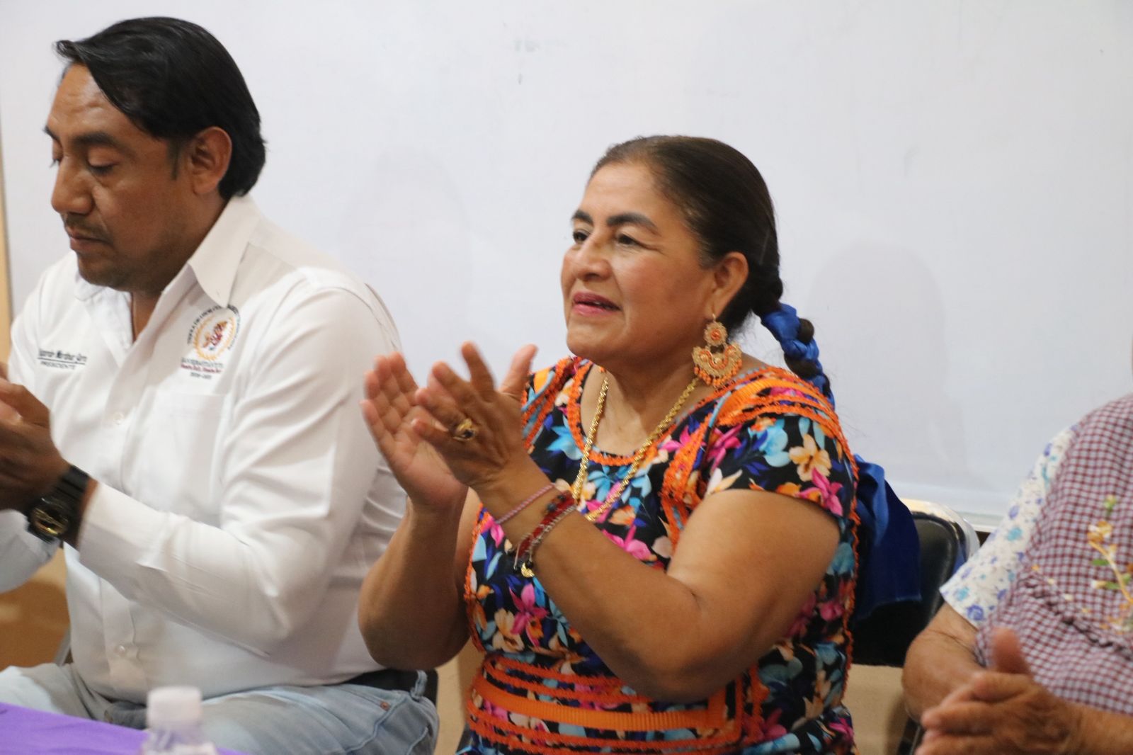 Agradeció la hospitalidad y solidaridad del presidente municipal, Edgar Martínez. Así como la presencia y ejemplo de Herminia Velasco y Petrona Olivera, guardianas de la lengua zapoteca de la comunidad.
