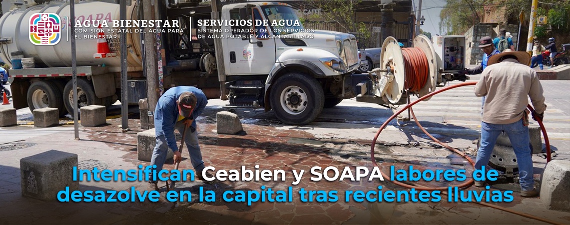 Intensifican CEABIEN y SOAPA labores de desazolve en la capital tras recientes lluvias